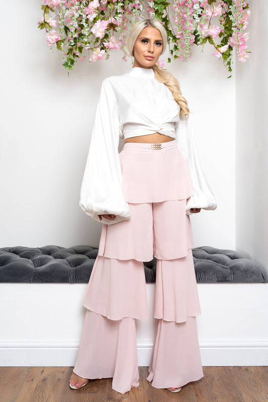 Vix Diamante Buckle Bandeau Crop Top & Mini Skirt Co-ord Pink